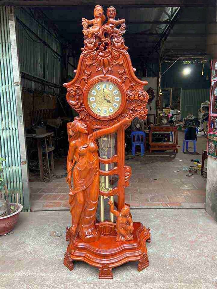 Đồng hồ cây phòng khách không chỉ là vật dụng đo thời gian mà còn là biểu tượng của sự sang trọng, đẳng cấp và gu thẩm mỹ của gia chủ. Sản phẩm sở hữu thiết kế đồng hồ cây đứng cỡ lớn, được chạm khắc thủ công công phu với hình tượng nghệ thuật cổ điển, đường nét mềm mại, tinh xảo. Đây là dòng đồng hồ cây gỗ tự nhiên cao cấp phù hợp với những không gian phòng khách biệt thự, nhà phố sang trọng, sảnh lớn.